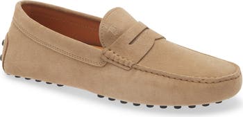 Inspired by 1950s driving shoes, this moc-toe style featuring a traditional penny keeper is expertly handmade from calfskin suede and is set on a trademark 'gommino' rubber sole that provides excellent traction.