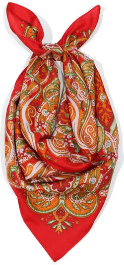 Give your look a Western kick with this lightweight square scarf patterned in retro‑eclectic paisley. Wear it as a bandana, wrap it around your tresses as a headscarf or tie it to the handle of a favorite handbag.