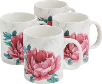 Peony 4 Piece 16 Ounce Fine Ceramic Mug Set in