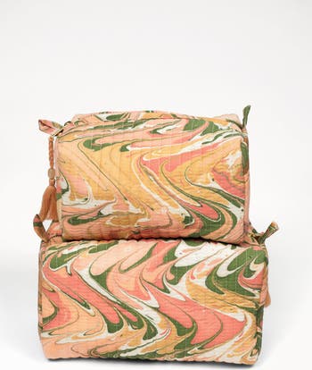 Peony Bloom Hand-Marbled Cosmetic Bag - Set of 2