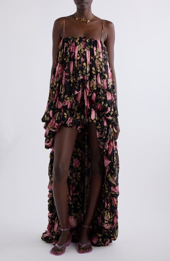 Sewn in a bubbly high-low silhouette from airy silk gauze in a vintage-inspired peony print, this runway-featured jumpsuit perfectly captures the spring '25 collection's themes of lightness and flow.