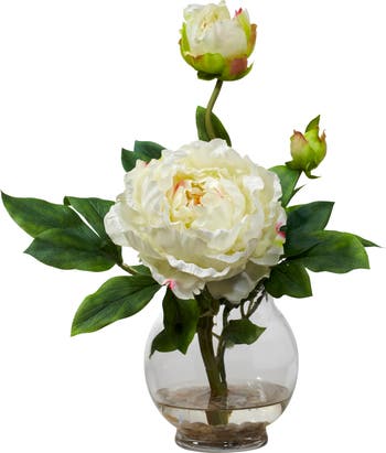 Peony with Fluted Vase Silk Flower Arrangement