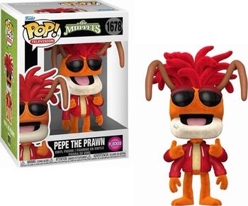 Pepe the Prawn (Flocked) (The Muppets) Funko Pop! Specialty Series. Comes packaged in a Funko Pop window display box.