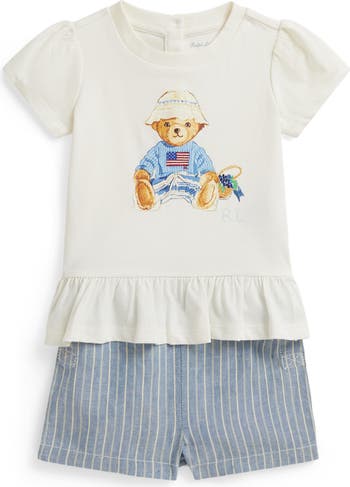 Baby will be budding with signature New England coastal charm in this peplum T-shirt and linen-and-cotton shorts set starring the beloved polo bear.