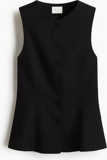 Waistcoat in woven fabric with a V-neck and buttons down the front. Shaping seams at the waist and a flared peplum for a nipped-in silhouette. Lined.