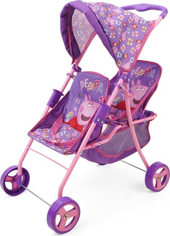 - PUSH YOUR DOLL IN STYLE: Peppa Pig stroller is designed for 2 dolls up to 24". The bright stroller has a purple, pink & flower design that your little one is sure to love! The fabric is made of durable polyester which can be easily hand washed.