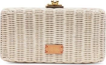 Inspired by vintage baskets, this picnic-worthy clutch fashioned from earthy woven wicker features an optional chain crossbody strap for hands-free wear.