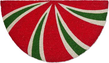 Peppermint Shaped PVC Coir Door Mat Red Multi Christmas