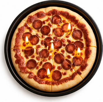 A pepperoni pizza candle designed to look just like the real thing. Handcrafted with detailed toppings, from melted cheese to perfectly placed pepperoni, it recreates the familiar look of a classic slice in sculptural wax form. Set inside a baking pan, the novelty food candle doubles as a playful décor piece, adding a warm touch to kitchens, dining spaces or shelves—and makes a fun gift for pizza lovers.