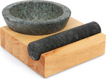 Enhance the rich flavors and aromatics of fresh herbs and spices with this granite mortar and pestle set featuring a wooden base that allows for easy grinding.