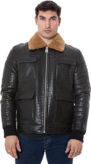 Expertly crafted from 100% shearling sheepskin with a crocodile-embossed finish, this leather bomber jacket offers lasting comfort and refined detail. Designed for both style and practicality, this jacket features a plush wool interior, four spacious front pockets, and a full zip closure. Ribbed cuffs and a straight hem add a classic touch, while the textured, glossy surface delivers a distinctive look. The durable materials and thoughtful construction ensure this piece is made to endure season after season. Ideal for those seeking a premium leather bomber jacket, this style is imported from Turkey and shipped from the USA. The combination of genuine sheepskin, crocodile embossing, and functional storage makes it a standout choice for outerwear. Suitable for a range of occasions, this jacket blends sophistication with everyday utility.