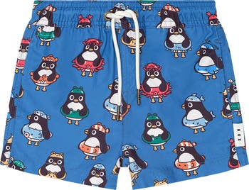 From the pool to the beach to the backyard. These swim boardshorts are your summer bestie, rated UPF 50+ for the highest achievable sun protection. Consciously crafted with recycled polyester, they feature a soft, stretchy waistband, adjustable drawstring, and Percy floatie print for fun.