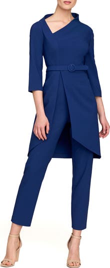 Achieve a two-piece look with elegant, one-and-done ease in a striking jumpsuit that reads like a modern jacket paired with trimly tailored ankle pants.