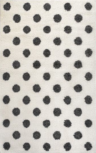 Inspired by mid-century rugs, our polka dot rug has a soft, low shag pile. The all-over pattern is woven in gray on an ivory background. Add some graphic punch to your living room, bedroom, or reading nook with this easy-care rug.