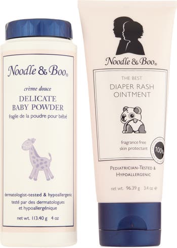 Diaper Rash Ointment Ingredients: Zinc Oxide 2%, Petrolatum, Mineral Oil, Glycerin (Vegetable), Ozokerite, Castor Oil, Lanolin, Glyceryl Stearate, Peg-100 Stearate, Allantoin, Bisabolol, Aloe Barbadensis Leaf Extract, Tocopheryl Acetate, Panthenol (Provitamin B5), Retinyl Palmitate (Vitamin A), Tocopherol (Vitamin E); Delicate Baby Powder Ingredients:<br>Zea Mays (Corn) Starch, Avena Sativa (Oat) Kernel Flour, Allantoin, Aloe Barbadensis Leaf Juice, Tricalcium Phosphate, Fragrance (Parfum)