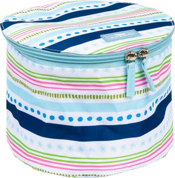 GEMS TO GO, NO TANGLES. Avoid tangles with this compartmentalized jewelry case that is as cute as it is functional. There's a roomy main compartment, three drawstring pouches, and a webbing strap in the lid (great for rings) that snaps shut. Pack it up, zip it shut, and go! A great gift too. Available in two sizes, this one is great for an extended trip.
