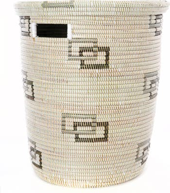 Wolof women in the West African nation of Senegal update traditional coil weaving methods by enlivening natural grass baskets with strips of plastic salvaged from a mat factory. Cattails grow abundantly in rural Senegal, so women can earn a sustainable income from basket weaving while enriching homes around the world with modern African craftsmanship. This classic-style laundry hamper storage basket features an overlapping lid and cutout handles. Because this is a handcrafted item, each will vary slightly.