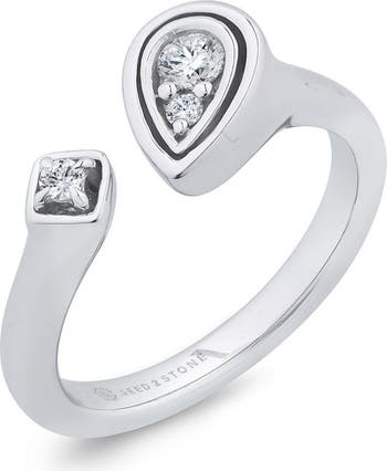 You will continuously be surprised by this unexpected and eye-catching design. The open horseshoe allows you to wear this ring in various combinations on multiple fingers, even on your thumb! Two lab-grown diamonds, make up the pear with a third finishing the design, 0.16 ctw.