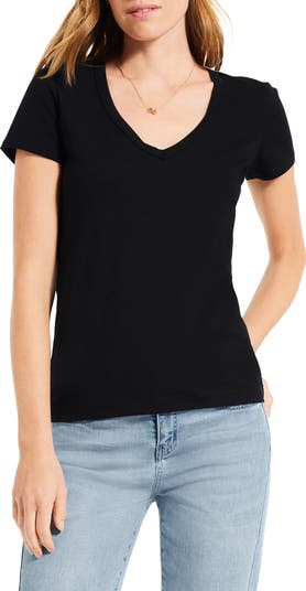 A stretch-kissed mix of cotton and modal kick off the perfection of a V-neck T-shirt designed in a slightly fitted silhouette.
