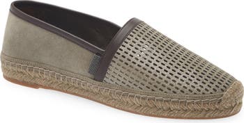 This shimmering jute-wrapped espadrille is a reinterpretation of the timeless warm-weather style with a contemporary update. The light and airy perforated toe features a subtle metallic finish that enhances the elegant design, while supple suede and leather binding provide refined color contrast. A shiny monili-embroidered tag adds signature sparkle.