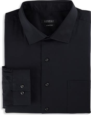 Enjoy ultimate comfort and style with our Synrgy Performance dress shirt. Designed in a cotton and polyester blend infused with stretch, moisture-wicking technology, and a flexible collar, it ensures freedom of movement and keeps you cool and dry all day. Wrinkle resistant so it's ready to go right out of the dryer, its easy to care for and adds convenience for travel. Elevate your wardrobe and embrace a perfect blend of performance and polished style. Plus, it's a style you'll find exclusively here at DXL, crafted with precise proportions and an ideal fit for Big and Tall guys. The collar expands up to an extra half inch for even more comfort and it features unbreakable buttons for durability.