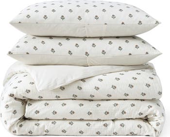 A floral pattern inspired by traditional Indian block prints colors this cotton-gauze set that adds a homey touch to any bedroom decor.