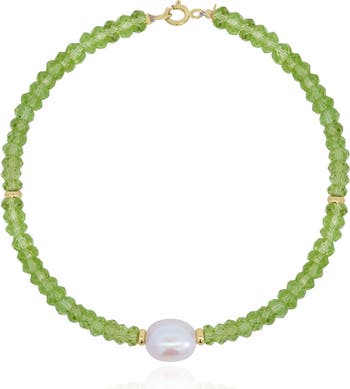 - Peridot Bead Pearl Bracelet