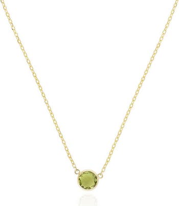 Our green topaz single bezel necklace adds a fun pop of color to your layered look! Also the perfect birthstone piece for an August baby!