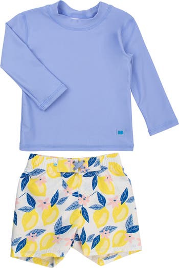 Get baby ready to splash and play in this swimsuit featuring a protective long-sleeve rashguard and coordinating trunks.