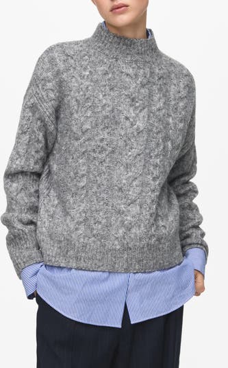 Braided cable stitching adds cozy texture to this woolly mock-neck sweater.