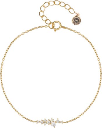 Elevate your style with our 18K gold plated sterling silver chain link bracelet, featuring a stunning cluster of round cut cubic zirconia stones. This finely crafted bracelet combines the timeless elegance of gold with the sparkle of high-quality cubic zirconia, offering a luxurious look perfect for any occasion.