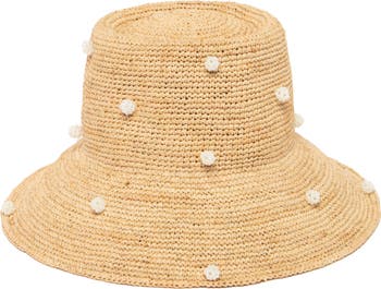 Clusters of luminous immitation pearls dot this bucket hat that casts the chicest shade as it keeps you cool under lightweight raffia.
