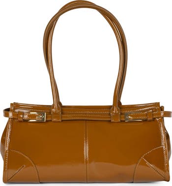 A belted design and drawstrings lend extra shape and structure to this soft suede shoulder bag complete with a removable crossbody strap.