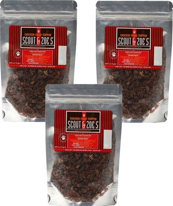PET FOOD TOPPER: CHICKEN - 3 PACK, 4 OZ BAGS - Scout & Zoe’s Premium Chicken Meal Topper for Dogs & Cats – Human-Grade, USA-Sourced, High-Protein Food Enhancer – Grain-Free, Made in USDA-Inspected Facilities. ENHANCE MEALTIME: Elevate your pet's dining experience with our chicken food toppers. Perfect for adding a burst of flavor and quality protein to your pet’s diet, it’s a wholesome and delicious way to make mealtime special. PREMIUM QUALITY: Our chicken toppers are made from natural ingredients, ensuring quality for your furry friend. PROTEIN-PACKED: Packed with protein, our chicken toppers provide an extra boost of nutrition to support your pet's health and vitality. VERSATILE USAGE: These toppers can be used with dry kibble, wet food, or raw diets, offering versatility to suit your pet's preferences. NO ARTIFICIAL ADDITIVES: We prioritize your pet's well-being by offering toppers free from artificial colors, flavors, and preservatives. IDEAL FOR PICKY EATERS: If your pet is a finicky eater, our chicken food toppers can entice their appetite and encourage them to finish their meals. Fabulous for picky eaters, dogs with a diminished appetite or as a treat for your very deserving dog! DIGESTIBLE & DELICIOUS: Not only are these toppers tasty, but they are also easily digestible, making them suitable for pets with sensitive stomachs. Net weight is 4 oz with safety seal. Four ounces / 113 grams per bottle.