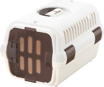 PET CARRIER II: SMALL - WHITE - Richell’s Pet Travel Carrier is 100% made in the USA and designed to transport your pet safely from one location to another. With a comfortable handle and a clear plastic front door, this carrier is the perfect way to bring your pet along. It can be used as a pet house with the ability to take the door completely off. Featuring a seat belt latch to keep your pet safe and sound during car rides. This carrier is also fully collapsible for easy storage as well as 4 latches on the top and base for easy assembly. Because your pet is family, our Pet Travel Carriers are as comfortable for you as they are for your pet. Small size for dogs and cats up to 11 lbs. Inside the carrier: (Small) 11 x 16.7 x 9.6”H. Side door opening: (Small) 7.9 x 10.2”.