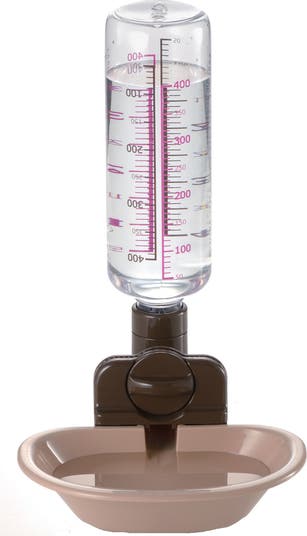 Making sure your pet stays hydrated has never been easier with our Pet Rehydration Station. Conveniently attaches to most pens, gates, and crates and includes graduation lines to monitor your pet’s fluid intake. This is a gravity fed water source. You’ll have no more watery messes to wipe up when refilling, simply snap off the bottle, and fill with water. The included stopper prevents spills, while the detachable dish makes clean up a breeze. This allows for your pet to be perfectly hydrated in your absence. Richell also offers a water stand that is sold separately. Bottle and dish included.