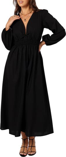Sugar and spice play oh-so-nice in a maxi dress cut from a blend featuring linen and cotton and served with a smocked waist and a deeply dipped neckline.