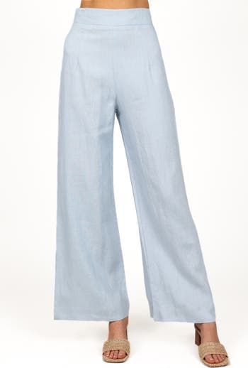 A streamlined fit through the hips gives way to a trend-savvy wide-leg silhouette in these high-waist linen pants perfect for warm weather.