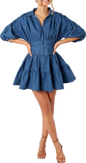A denim dress gets infinitely cuter when you add bubbly balloon sleeves and a ruffle-decked skirt.