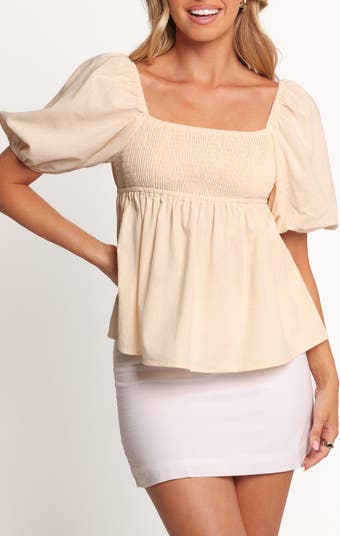 Jemima Puff Sleeve Smocked Cotton Babydoll Top