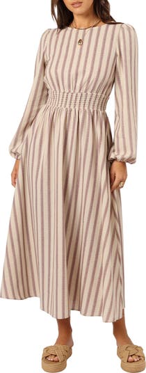 Cut from a breezy blend featuring linen and cotton, this striped maxi is a charming option for the summery season.