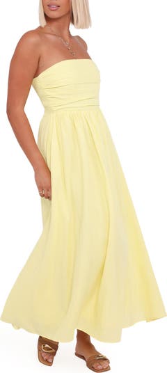 A lightweight, breathable linen blend gives sunny flair to this strapless sundress designed with a smocked back panel for a perfect fit every time.