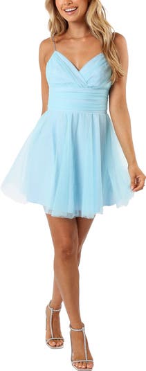 Arrive to the party looking ultraglam while rocking this frothy tulle minidress detailed with a jaunty tie at the back waist.