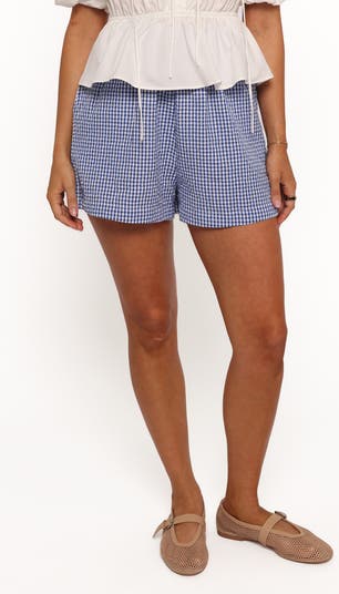 A playful gingham print charms these relaxed elastic-waist shorts crafted from a supersoft and breathable cotton blend.