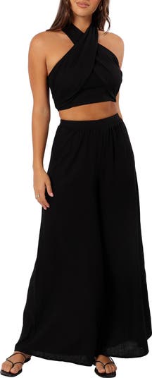 Always look chic and coordinated in this linen-kissed set featuring a twist-front crop top and graceful wide-leg pants.
