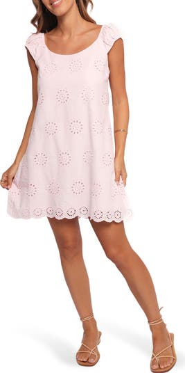 This shift minidress, cut from breathable eyelet cotton and topped with gently puffed cap sleeves, is the ultimate throw-on-and-go style when you want to get out and enjoy the sunny day.