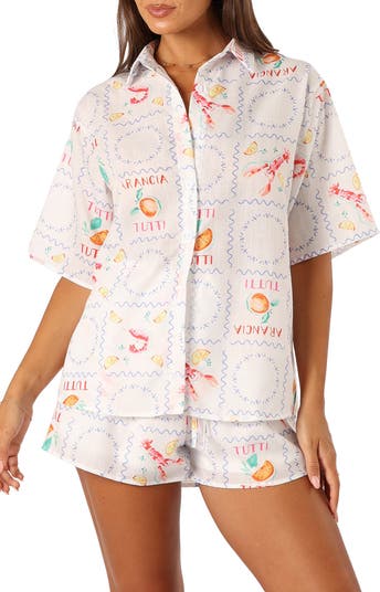 Walk the promenade in Portofino or relax just about anywhere in this roomy and lightweight camp shirt that's paired with equally easygoing matching shorts.