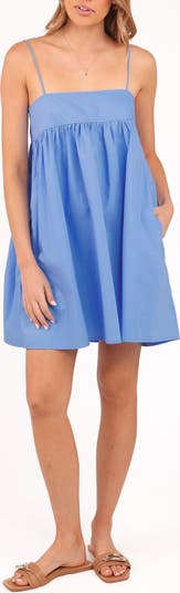 Cotton poplin in a summery shade adds sunshine-ready style to this shift dress popped with handy pockets at the sides.