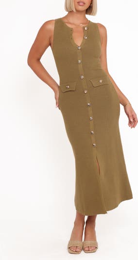 Sleeveless Rib Button-Up Sweater Midi Dress