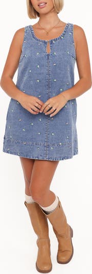 A sweet keyhole cutout detailed with a tie sits at the neckline of this summery cotton minidress popped with handy hidden pockets at the sides.